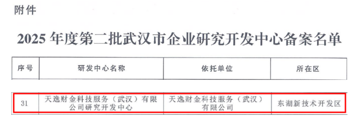(天逸集团获批2025年武汉市企业研究开发中心备案)