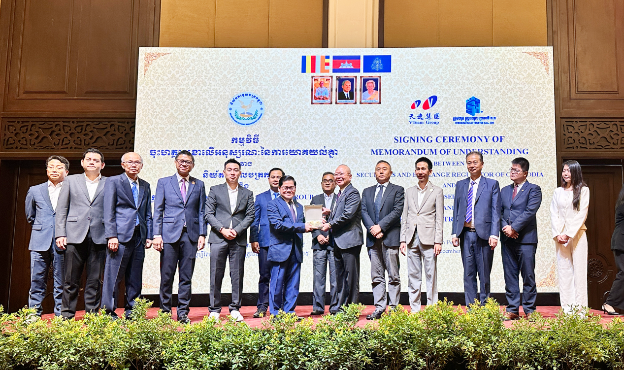2025年12月12日,天逸集团与柬埔寨证券交易监管局(SERC)在柬埔寨首都金边共同签署吴哥窟证券化战略合作备忘录。柬埔寨证券交易监管局(SERC)局长H.E. SOU Socheat、天逸集团董事长温峰泰、天逸集团董事梁海宁共同出席签约仪式。