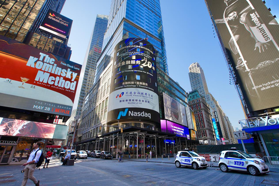 美东时间5月25日,天逸金融服务集团(以下简称“天逸集团”)登陆被称为“世界第一屏”的美国标志性建筑纳斯达克大屏,在被誉为“世界的十字路口”的纽约时代广场,向世界展示它的风采。