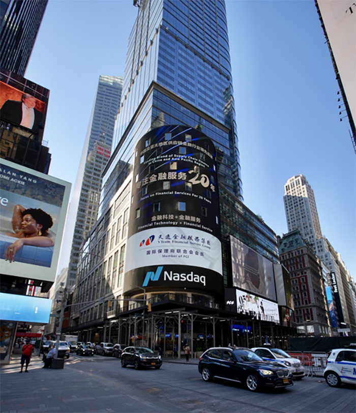 此次在纽约纳斯达克大屏震撼亮相,既表明天逸金融服务集团进军国际市场锐不可当的发展态势,也标志着又一个中国品牌走向世界的实力和雄心。
