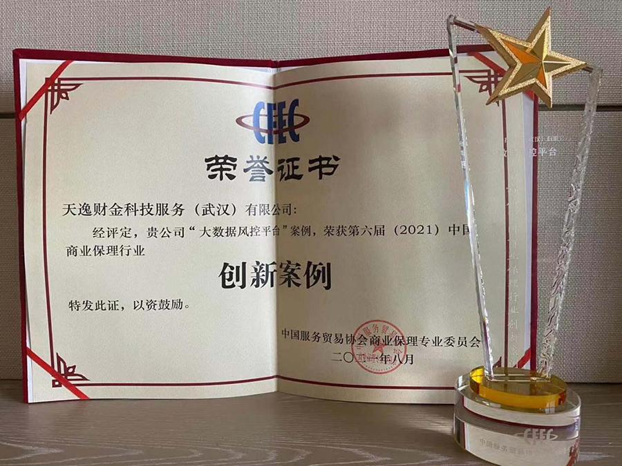 天逸集团“大数据风控平台”荣获第六届(2021)中国商业保理行业“创新案例奖”