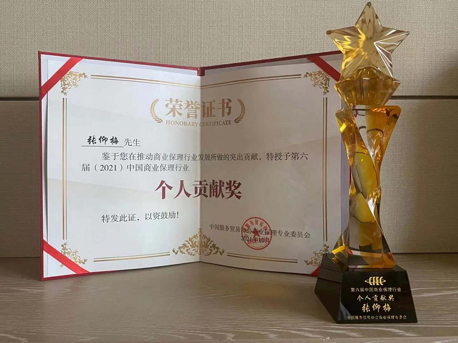 天逸集团董事长特助、平台事业部总经理张仰梅先生荣获第六届(2021)中国商业保理行业个人贡献奖