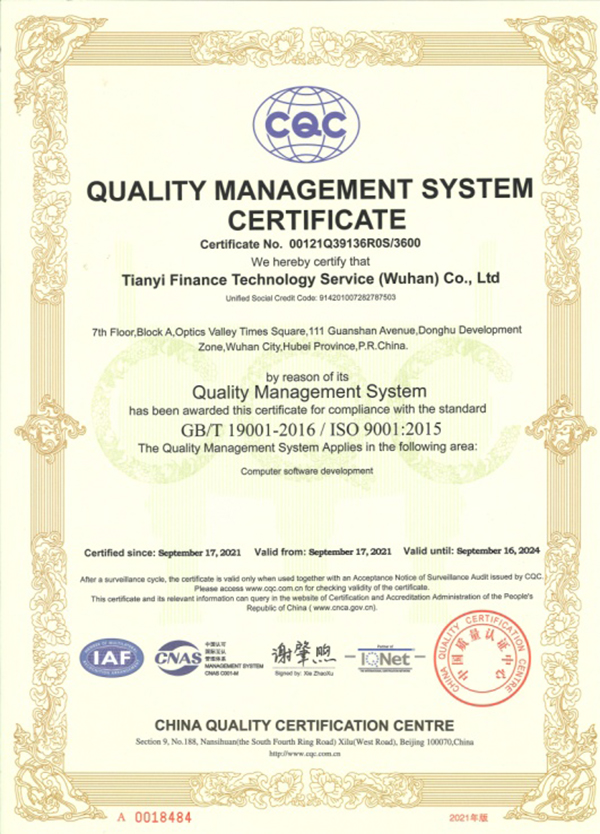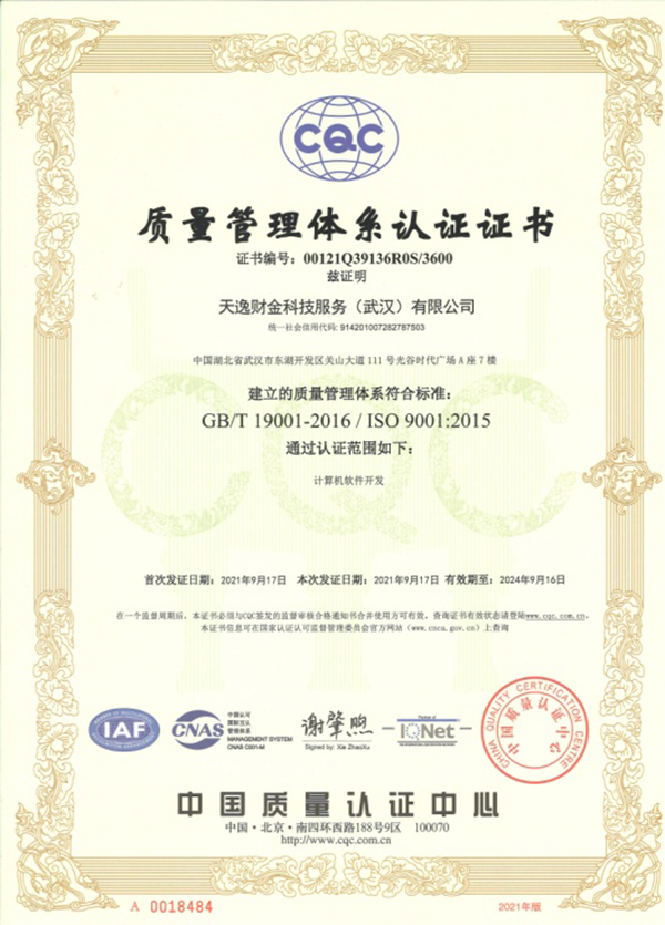 近年来,各行各业对信息安全日益重视,信息安全直接关系到企业的生存和发展。天逸集团作为一家集金融科技与金融服务于一体,专注于为供应链金融提供全方位FinTech服务的集团公司,从成立之初就注重提升公司产品质量和服务水平,此前已通过ISO9001质量管理体系认证,并于此次通过GB/T 19001-2016/ISO/IEC 9001:2015质量管理体系认证第三次换证审核。