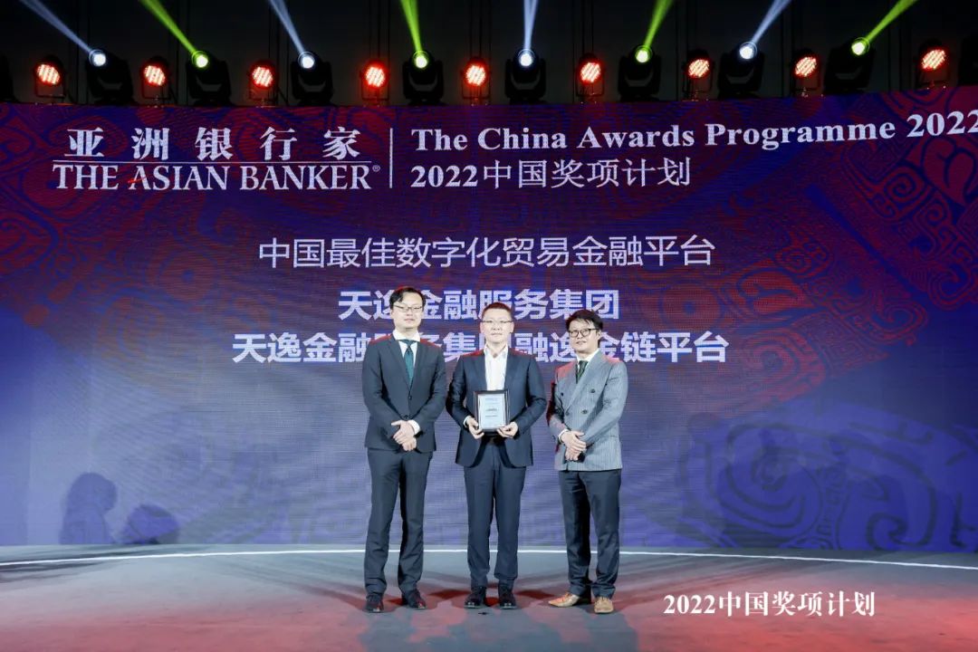 2022年8月,国际权威财经媒体《亚洲银行家》2022年度中国奖项计划颁奖典礼盛大举行,天逸集团“融逸金链平台”独揽2022年度《亚洲银行家》“中国最佳数字化贸易金融平台”大奖。