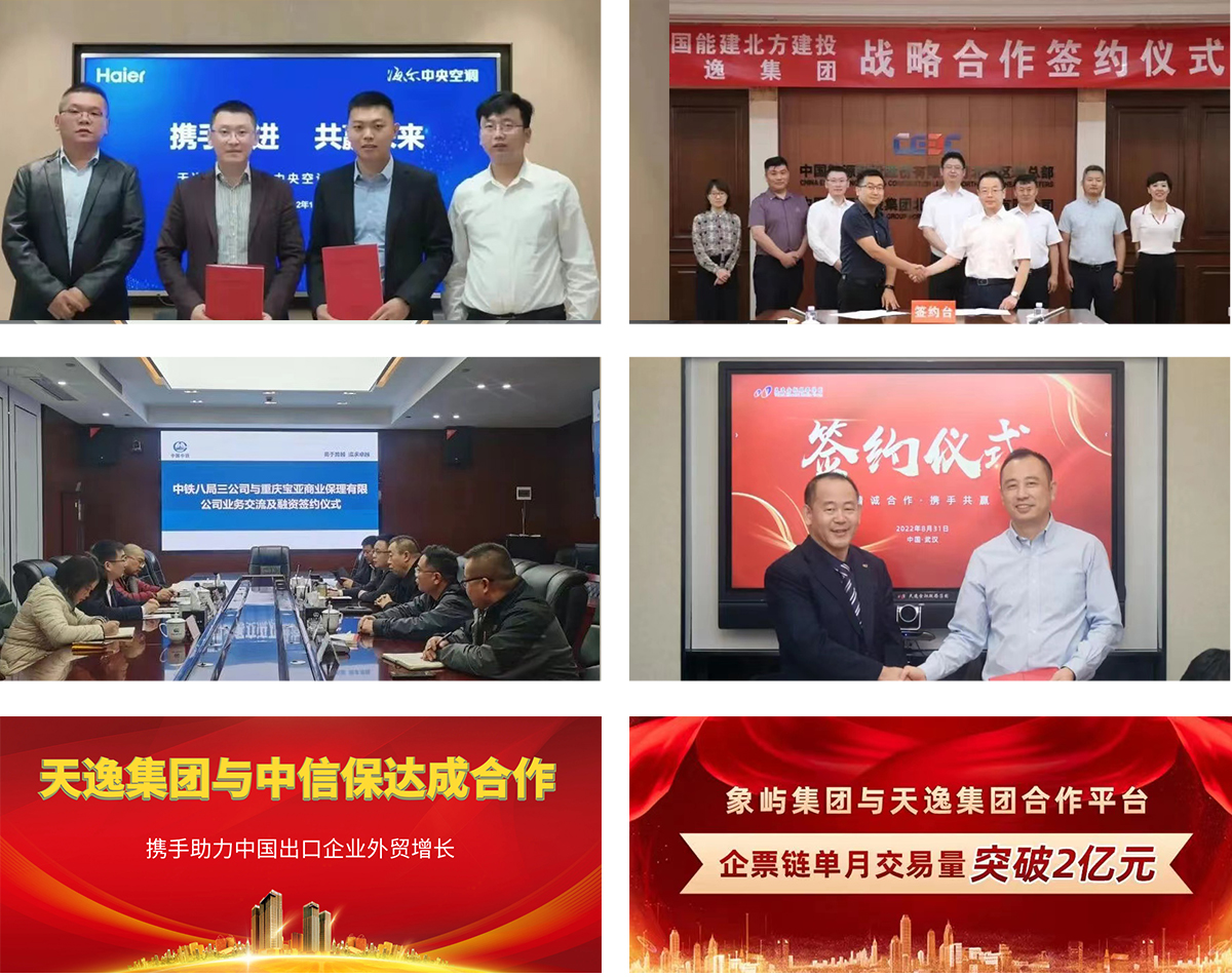 14、天逸集团与世界500强——象屿集团共同建立的供应链金融平台——企票链单月交易量突破2亿元。