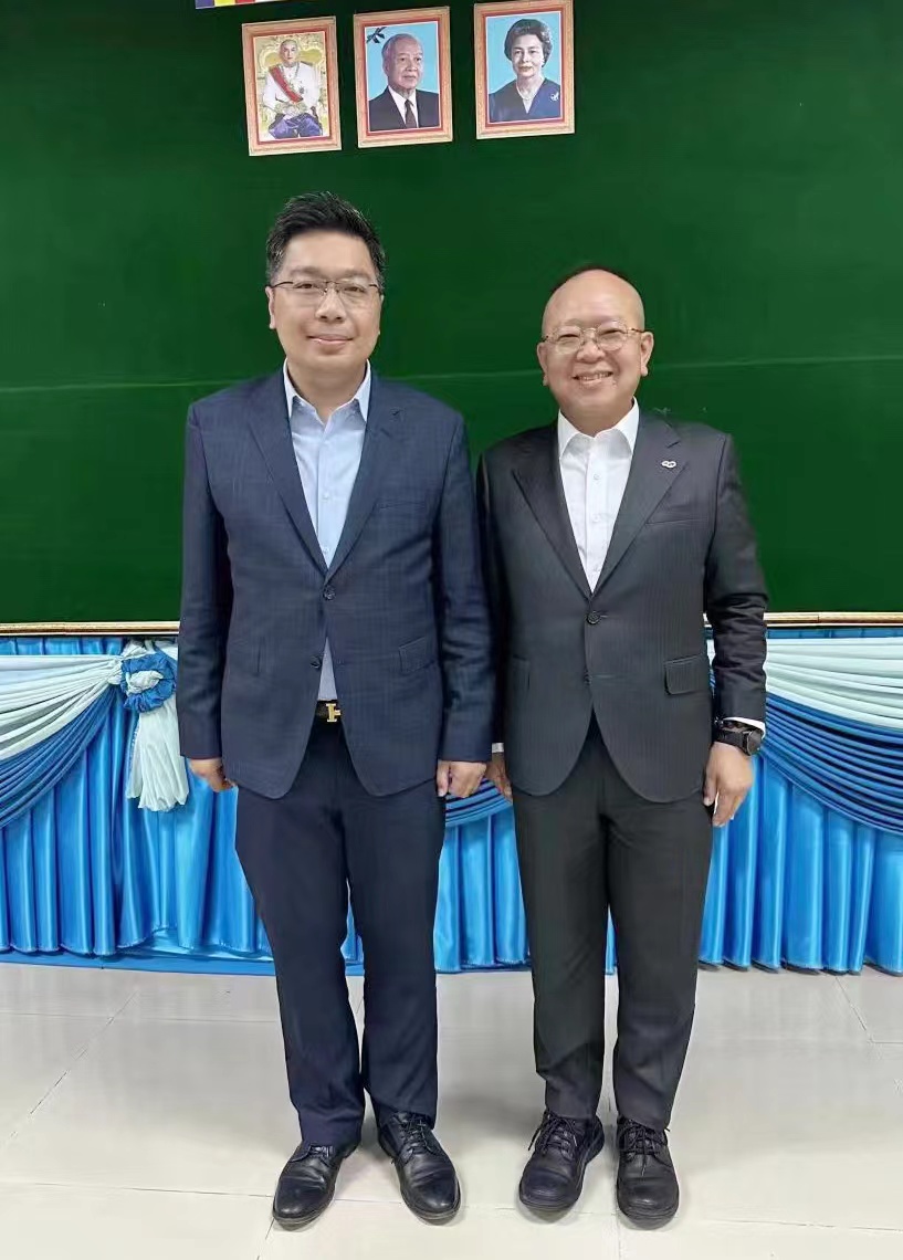 柬埔寨国家商务部副部长H.E. Buon Sarakmony(左)与天逸集团董事长温峰泰(右)会面