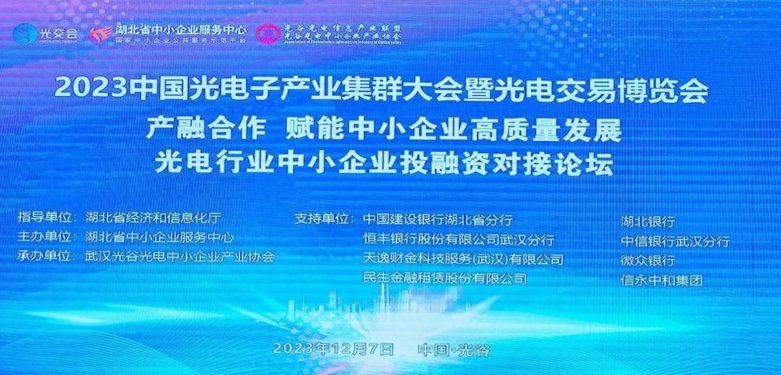 近日,由湖北省经济和信息化厅指导、湖北省中小企业服务中心主办、武汉光谷光电中小企业产业协会承办的“产融合作·赋能中小企业高质量发展”光电行业投融资对接论坛在武汉成功举行。天逸集团作为支持单位,受邀参加了此次活动。